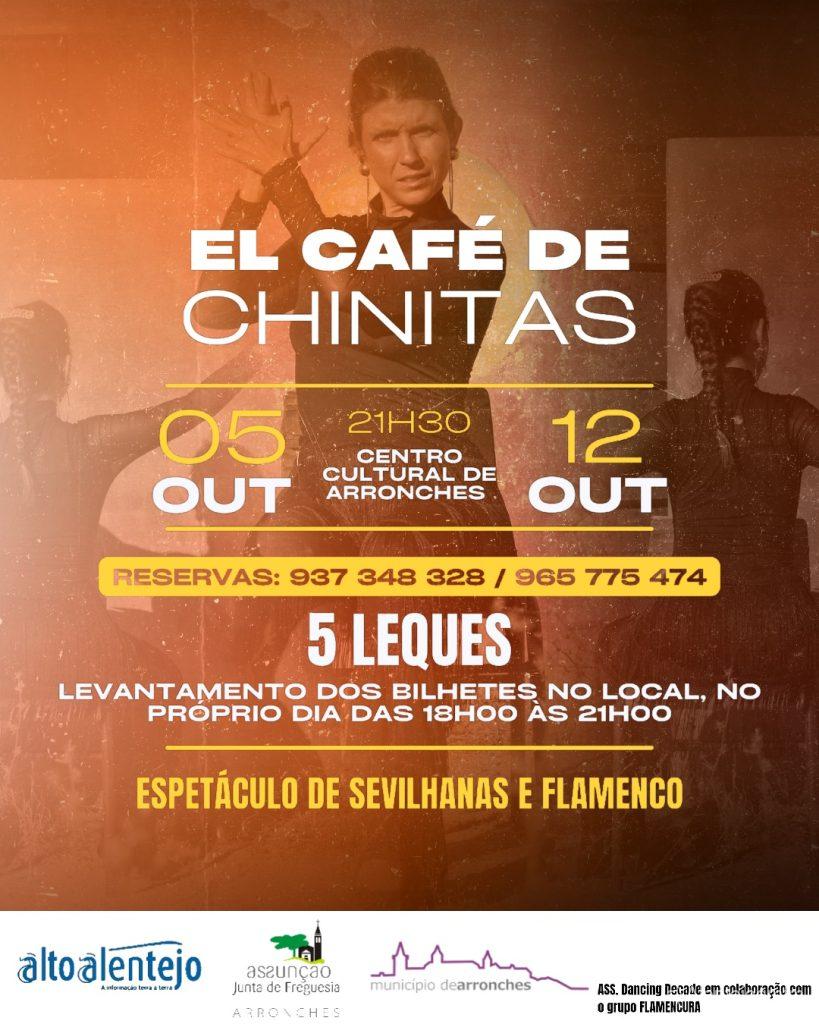 O espetáculo de Sevilhanas e Flamenco “El Café de Chinitas” volta a ser apresentado no sábado, dia 12 de outubro, pelas 21h30, no Centro Cultural de Arronches, depois de já ter subido a palco no passado dia 5.