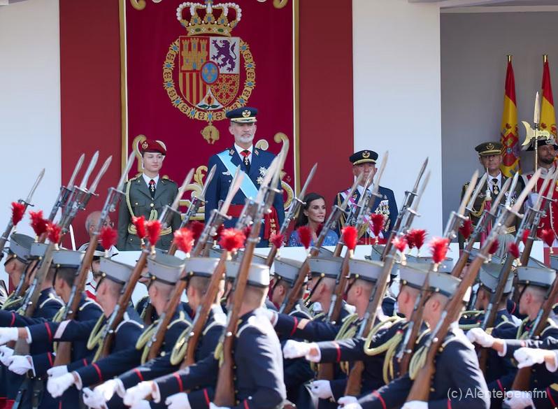 A capital espanhola, Madrid acolhe este sábado as comemorações do 12 de outubro, “Día da Fiesta Nacional”. O Governo, na sua quase totalidade, assiste ao desfile das Forças Armadas, este ano debaixo de chuva intensa, cerimónia presidida pelos reis Felipe VI e Letizia, acompanhados da princesa Leonor. No total, 4.092 militares, 85 aeronaves, 266 veículos motorizados, 210 cavalos e algumas dezenas de cães, participam no desfile no centro da cidade.