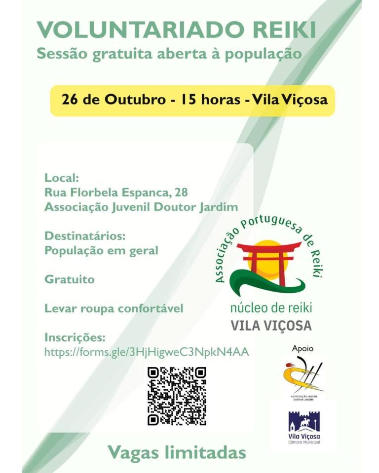 O Núcleo de Reiki de Vila Viçosa organizam no próximo sábado, dia 26 de outubro, pelas 15 horas, uma sessão desta terapia energética.