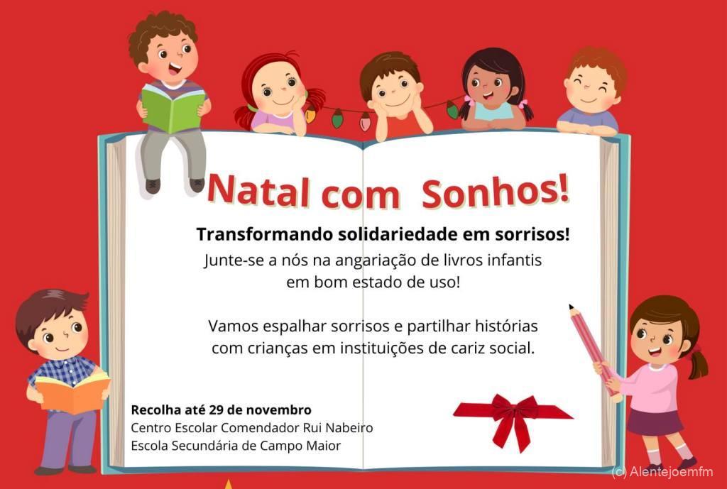 A campanha “Natal com sonhos” do Agrupamento de Escolas de Campo Maior (AE), que decorre até ao dia 29 de novembro, tem o objetivo angariar livros infantis para oferecer a instituições de caridade. Para além disso, também haverá uma árvore de natal decorada com fitas, onde cada aluno escreverá os “ seus sonhos”.