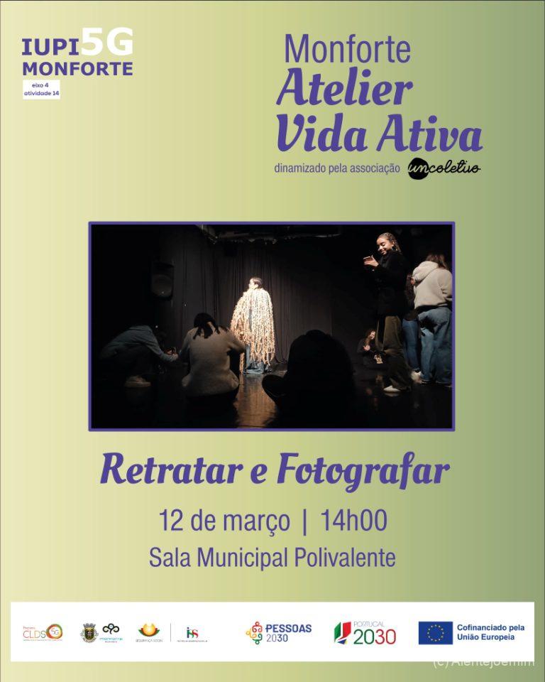 No âmbito das atividades do Contrato Local de Desenvolvimento Social (CLDS) de Monforte, a associação UmColetivo promove, esta quarta-feira, 12 de março, um atelier dedicado ao tema “Retratar e Fotografar”. A sessão tem início às 14 horas e decorre na sala municipal polivalente.