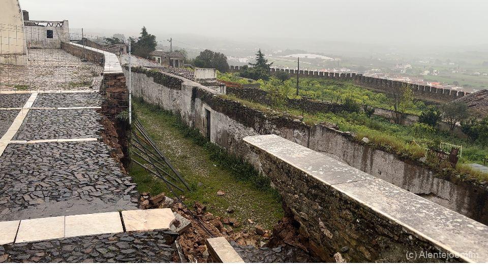 Na zona histórica da cidade, junto ao Castelo, segundo o coordenador Municipal de Proteção Civil de Estremoz, Januário Coradinho, o muro abateu num local que “estava debilitado e sinalizado e acabou por abater com a grande quantidade de chuva em pouco tempo”.