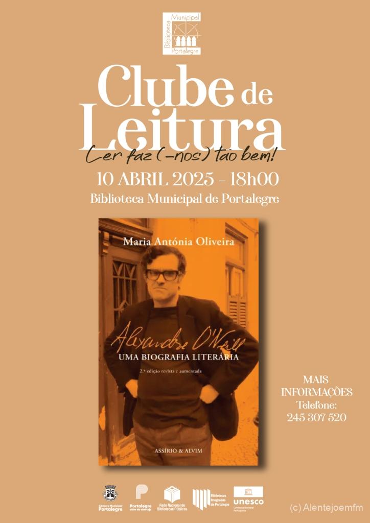 Inserida nas atividades a decorrerem durante este ano na Biblioteca Municipal de Portalegre, o Clube de Leitura desta instituição convida todos os interessados para a apresentação da obra “Alexandre O´Neill: uma Biografia Literária”, de Maria Antónia Oliveira, a decorrer esta quinta-feira, dia 10 de abril, pelas 18h.