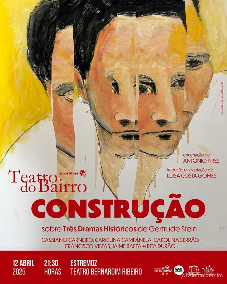 A companhia Teatro do Bairro sobe ao palco do Teatro Bernardim Ribeiro, em Estremoz, este sábado, dia 12 de abril, pelas 21h30 horas, com o espetáculo “Construção”, inserido na trilogia dos “três dramas históricos” de Gertrudes Stein.