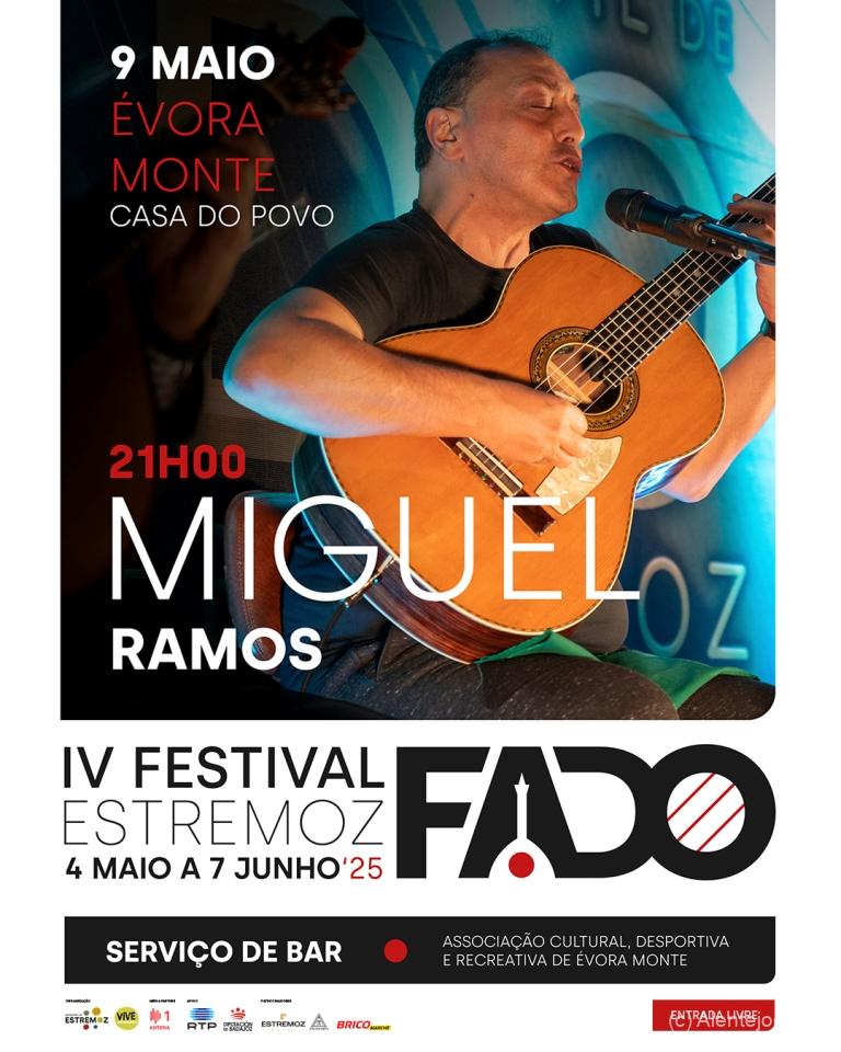 O IV Festival de Fado de Estremoz, a percorrer todas as freguesias do concelho, apresenta na próxima sexta-feira, dia 9 de maio, pelas 21 horas, um espetáculo do fadista Miguel Ramos, na Casa do Povo de Évora Monte.