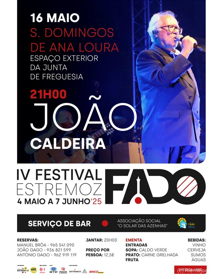João Caldeira apresenta-se em concerto, na noite desta sexta-feira, 16 de maio, pelas 21 horas, em São Domingos de Ana Loura. Trata-se de mais um espetáculo do 4º Festival do Fado de Estremoz.