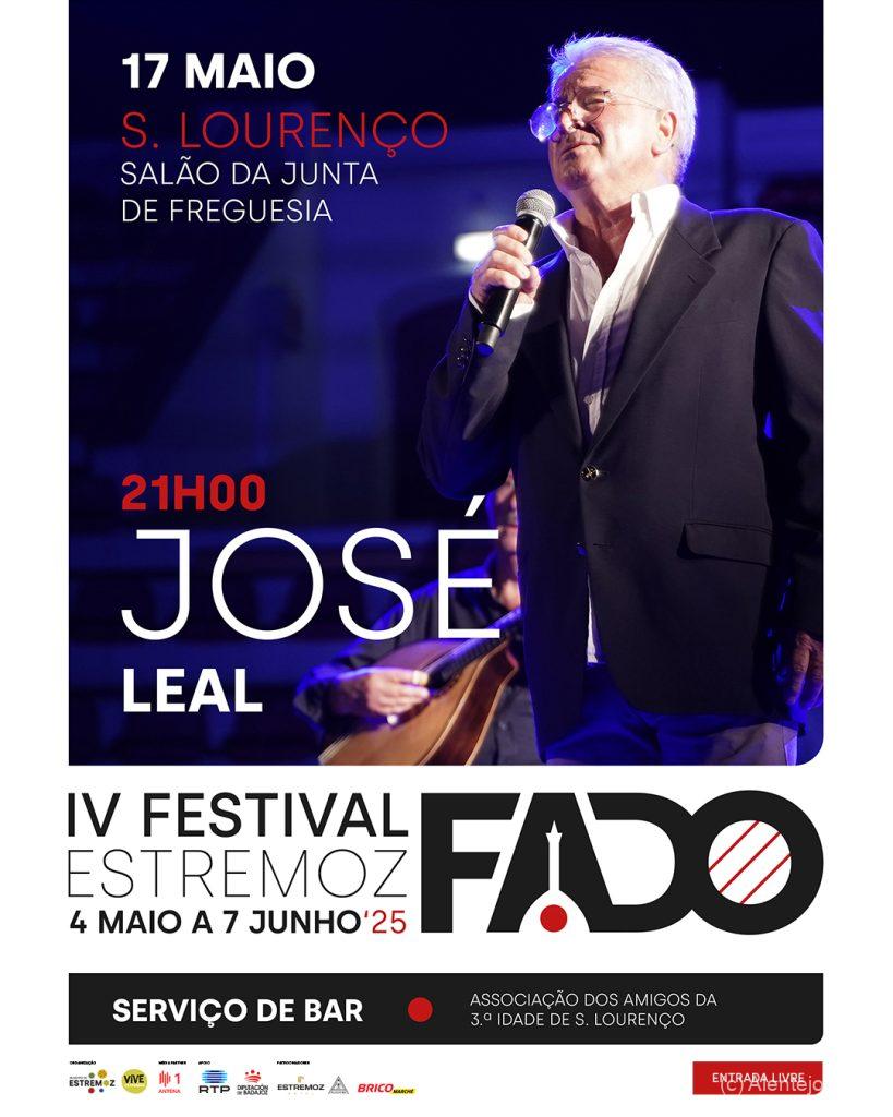 José Leal apresenta-se em concerto, na noite deste sábado, 17 de maio, pelas 21 horas, no Salão da Junta de Freguesia de São Lourenço. Trata-se de mais um espetáculo do 4º Festival do Fado de Estremoz.