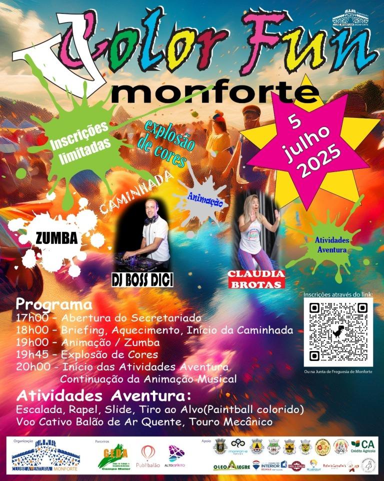 A vila de Monforte recebe este sábado, dia 5 de julho, a Color Fun, iniciativa organizada pelo Clube Aventura de Monforte, que conjuga a atividade física com diversão, através da realização de uma corrida ou caminhada.