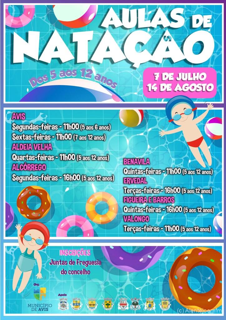 Com o objetivo de promover a atividade física e a destreza na natação, o Município de Avis lançou um programa de verão de aulas de natação para os mais novos aprenderem a nadar ou para aperfeiçoar as técnicas já aprendidas.