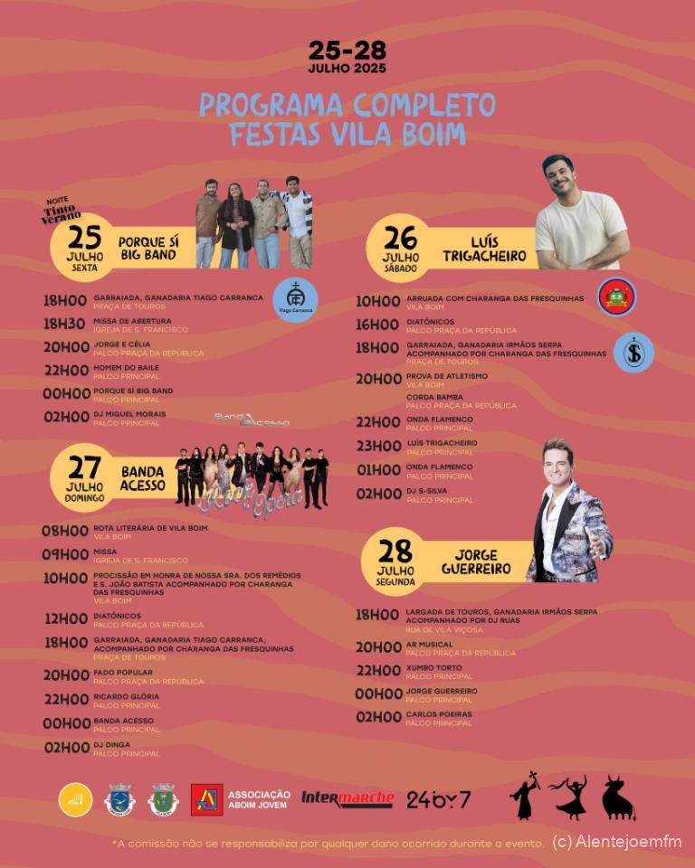 Luís Trigacheiro e Jorge Guerreiro são os cabeça de cartaz da edição deste ano das Festas de Verão de Vila Boim, que arrancam já esta sexta-feira, 25 de julho. A organização do evento, que se estende até segunda-feira, dia 28, está a cargo da família Cuco.