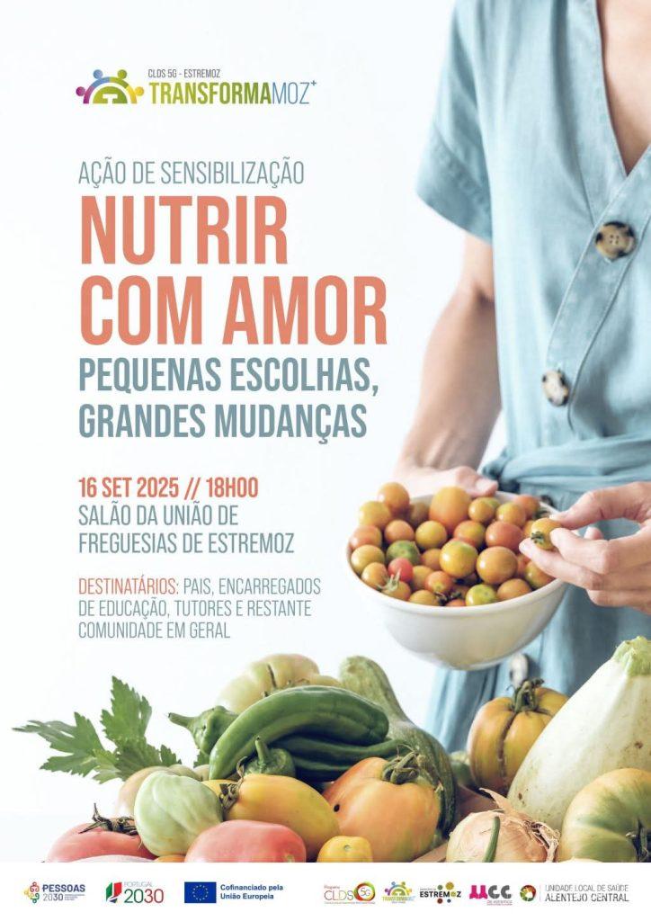 A ação de sensibilização “Nutrir com Amor”, sobre alimentação saudável, realiza-se amanhã, dia 17, pelas 18 horas, no Salão da União de Freguesias de Estremoz.