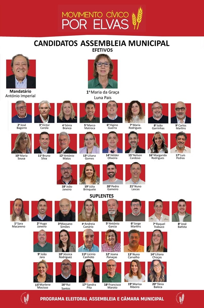 O Movimento Cívico por Elvas (MPCE) anuncia, em nota enviada à redação da Rádio ELVAS, todos os candidatos à Câmara e à Assembleia Municipal de Elvas.