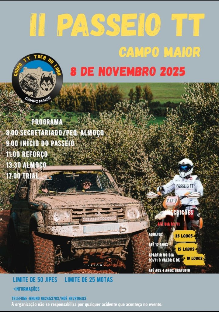 O Grupo TT Toca do Lobo organiza o seu segundo passeio de todo-o-terreno, em Campo Maior, no próximo dia 8 de novembro.