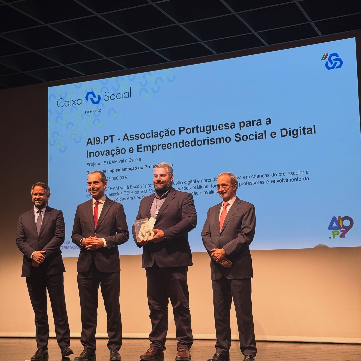 A AI9.PT foi distinguida com o Prémio Caixa Social 2025, na categoria Formação e Capacitação, com o projeto “STEAM vai à Escola”, uma iniciativa inovadora que leva a robótica, a programação e as metodologias STEAM ao ensino pré-escolar e ao 1.º ciclo em territórios vulneráveis.