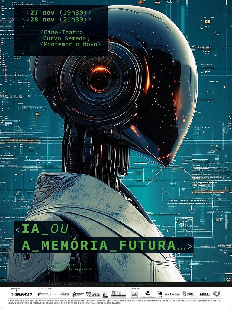 A Trimagisto apresenta no Cine-Teatro Curvo Semedo, em Montemor-o-Novo, na quinta e sexta-feira, dias 27 e 28 de novembro, “IA ou a Memória Futura…”, um espetáculo singular que propõe um teatro sem atores humanos, sem presença física em cena, onde a dramaturgia é inteiramente construída através de hologramas, vozes sintéticas e presenças digitais.