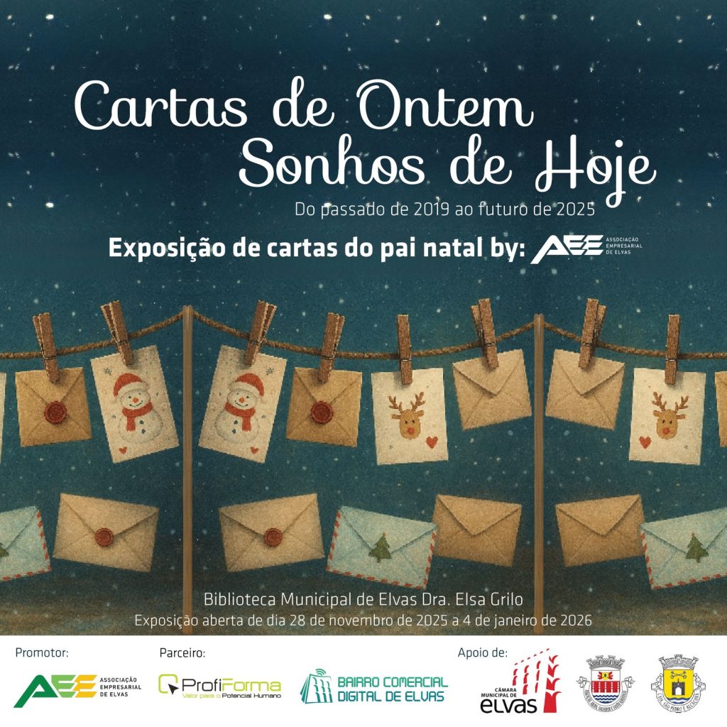A Associação Empresarial de Elvas promove, na Biblioteca Municipal de Elvas Dra. Elsa Grilo, a exposição “Cartas de Ontem, Sonhos de Hoje”, no âmbito do evento “Elvas Cidade Natal”.