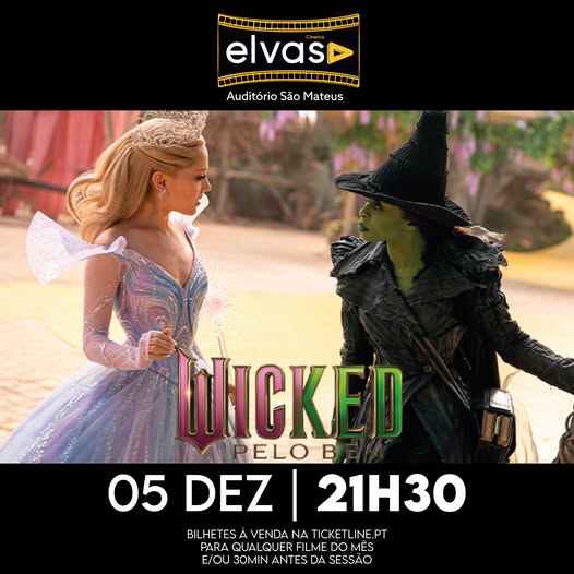 O filme “Wicked – Pelo Bem” vai estar em exibição esta sexta-feira, dia 5 de dezembro, no Auditório São Mateus, em Elvas.