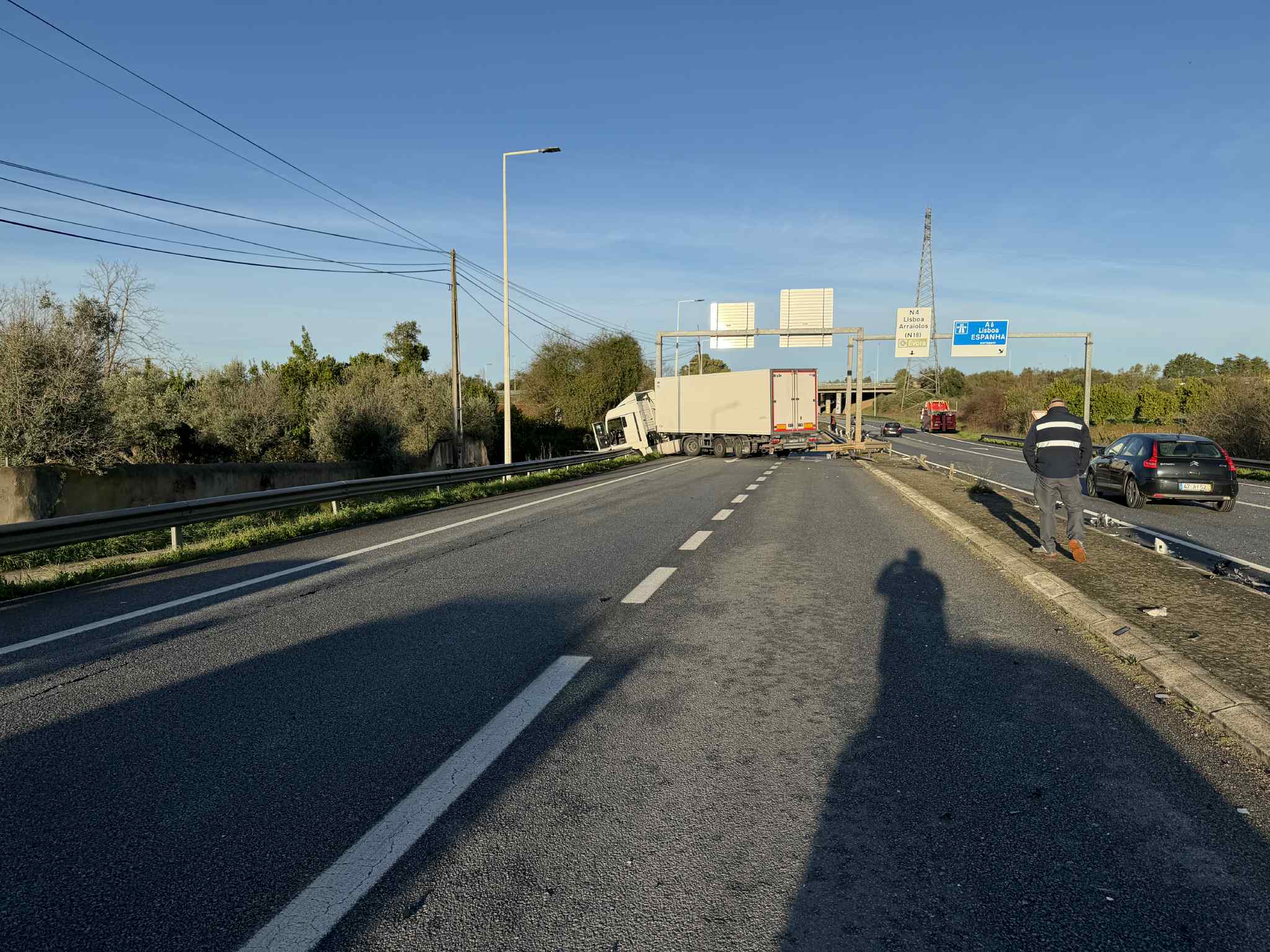 Uma vez que, após o embate, o pesado ficou atravessado na estrada, o trânsito na N4, no sentido Arraiolos – Estremoz está cortado.