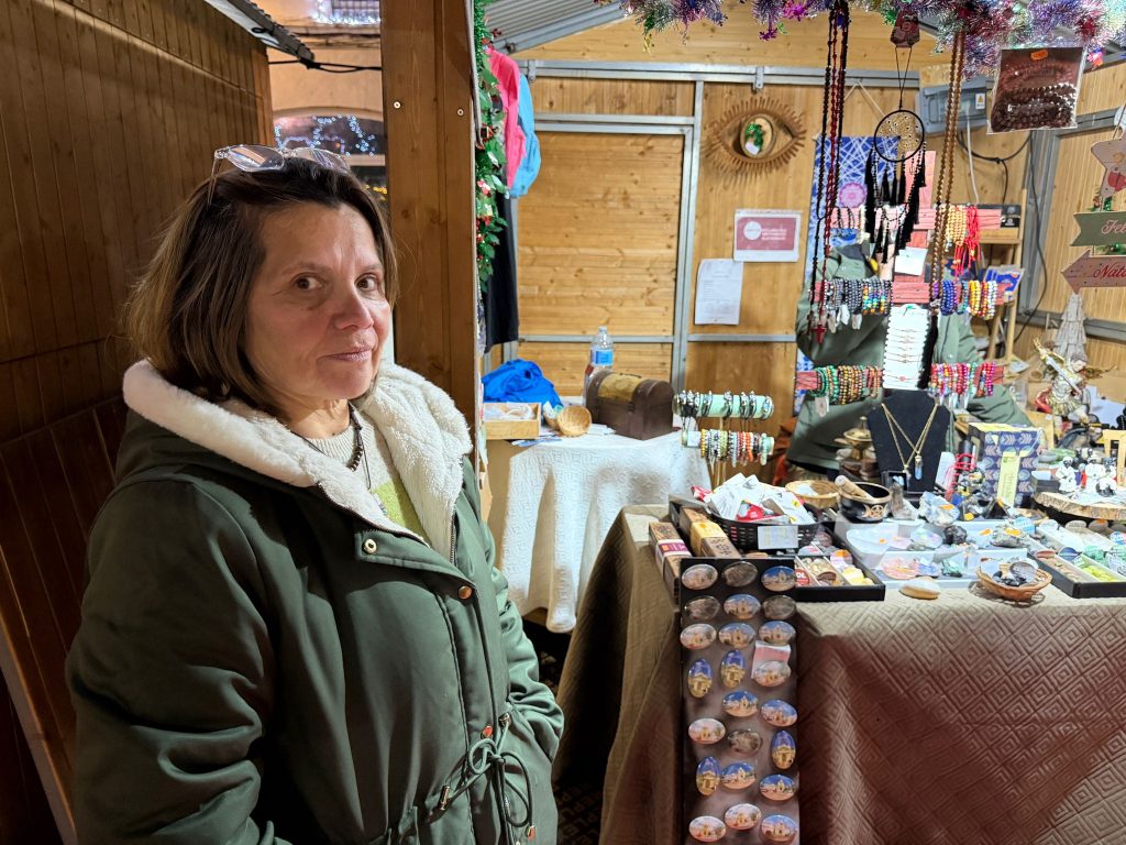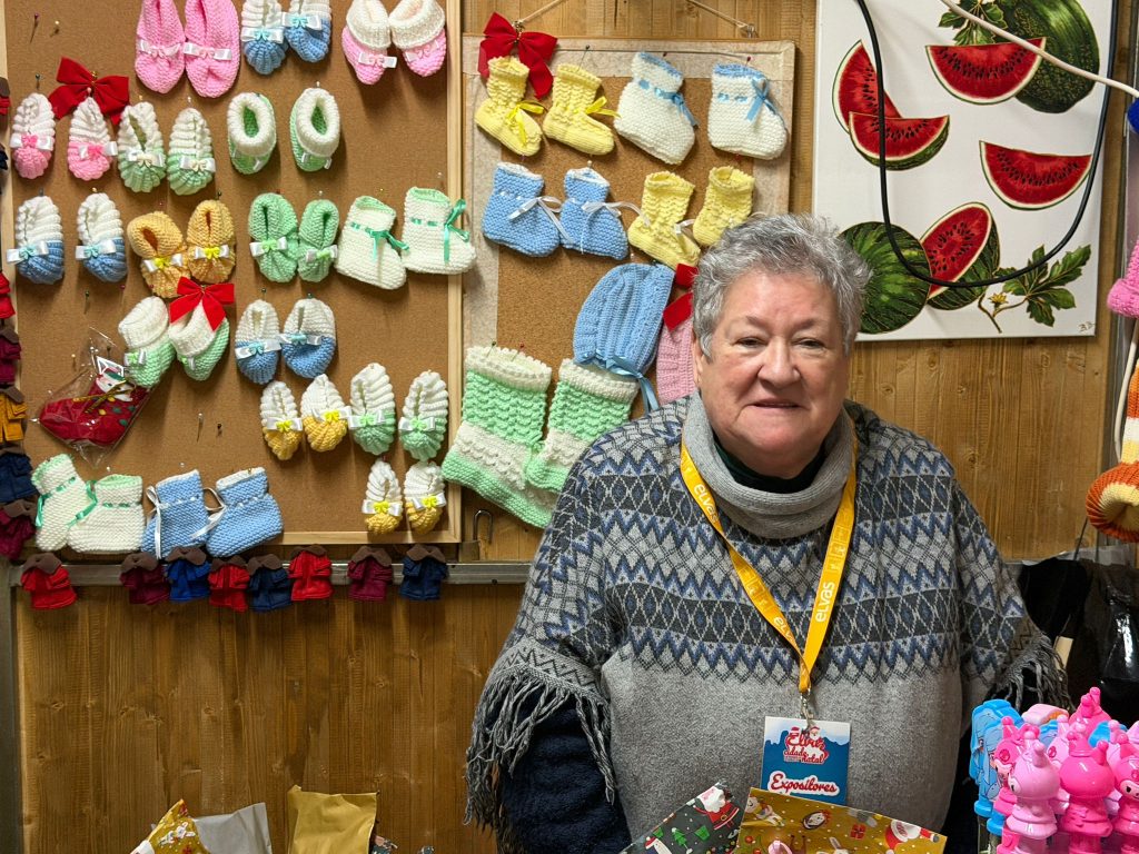 Na Feira Belinha Barbado diz que “Está a correr muito bem, graças a Deus. Tenho crochê, tenho tricô, tenho trapologia, tenho muitas coisas. Velas, tenho bonequinhos, tenho arcas, tenho muitas coisas, bandoletes para as meninas” E sobre valer a pena estar nesta feirinha, Belinha Barbado diz que “vivo um ano a pensar no ano seguinte a pensar no fim do ano pronto. Vale a pena, que eu gosto muito, muito, muito e gosto muito de vir aqui para a praça, porque vejo pessoas que só vejo uma vez no ano, só as vejo quando estou aqui e gosto muito de fazer destas coisinhas de artesanato, manualidades, sinto-me muito realizada a fazer serões nisto, estou a ver as minhas novelas e estou fazendo as minhas manualidades, gosto muito. Aqui, ao longo destes dias, encontra-se pessoas de todos os lados. Tiveram aqui pessoas de Cuba, de vários sítios, de Madrid, de Espanha então, tem vindo toda a Espanha toda, tem vindo aqui muitíssima gente. Os espanhóis gostam de tudo o que é feito realmente à mão. Tudo à mão é o que eles querem. Especialmente para crianças. Malinhas, malas, saquinhos com feltro, que eu faço saquinhos de feltro. E eles gostam muito. Carteirinhas para as meninas. Isto é uma maravilha aos fins de semana. Vamos pedindo um ano de cada vez”