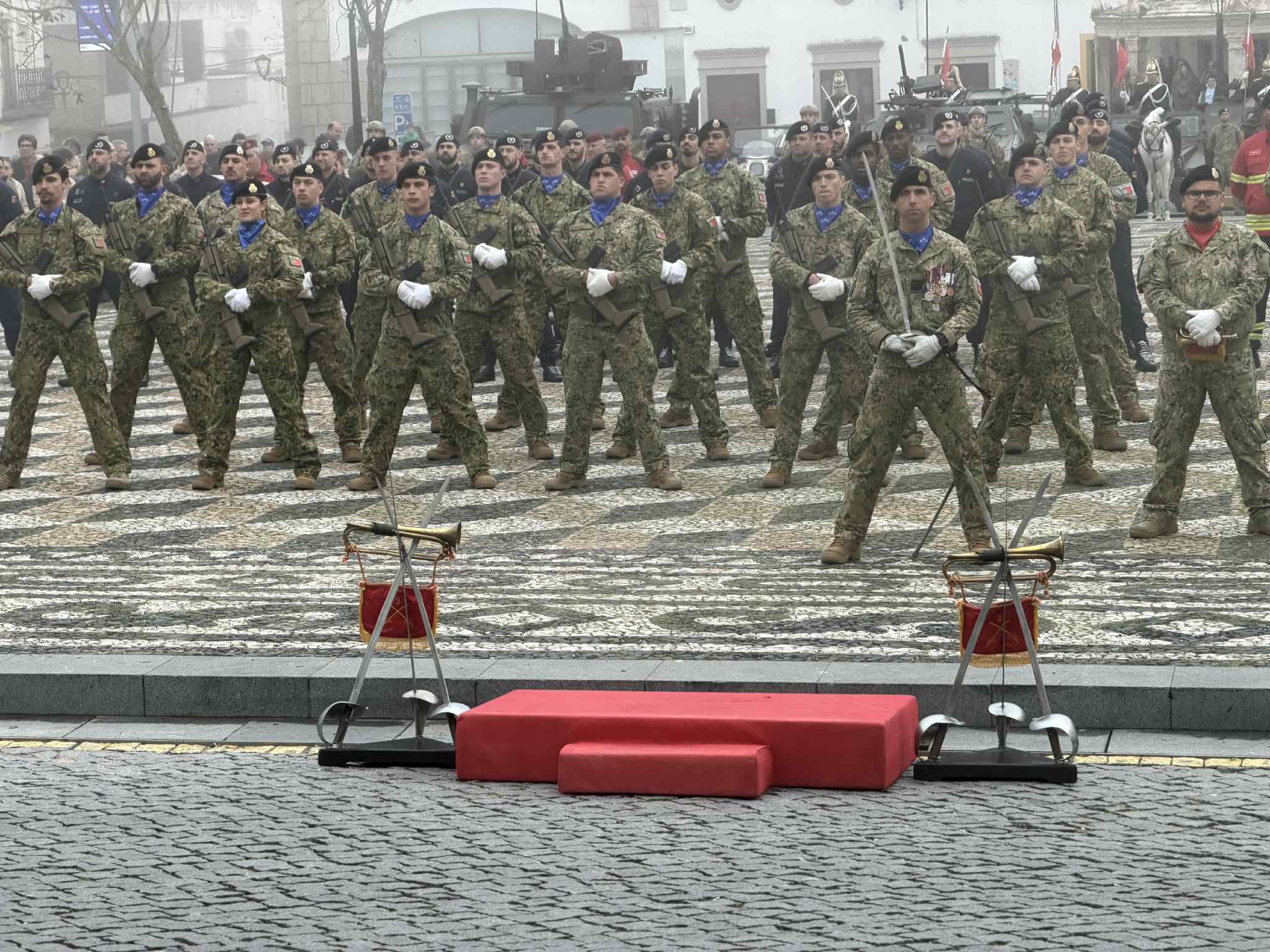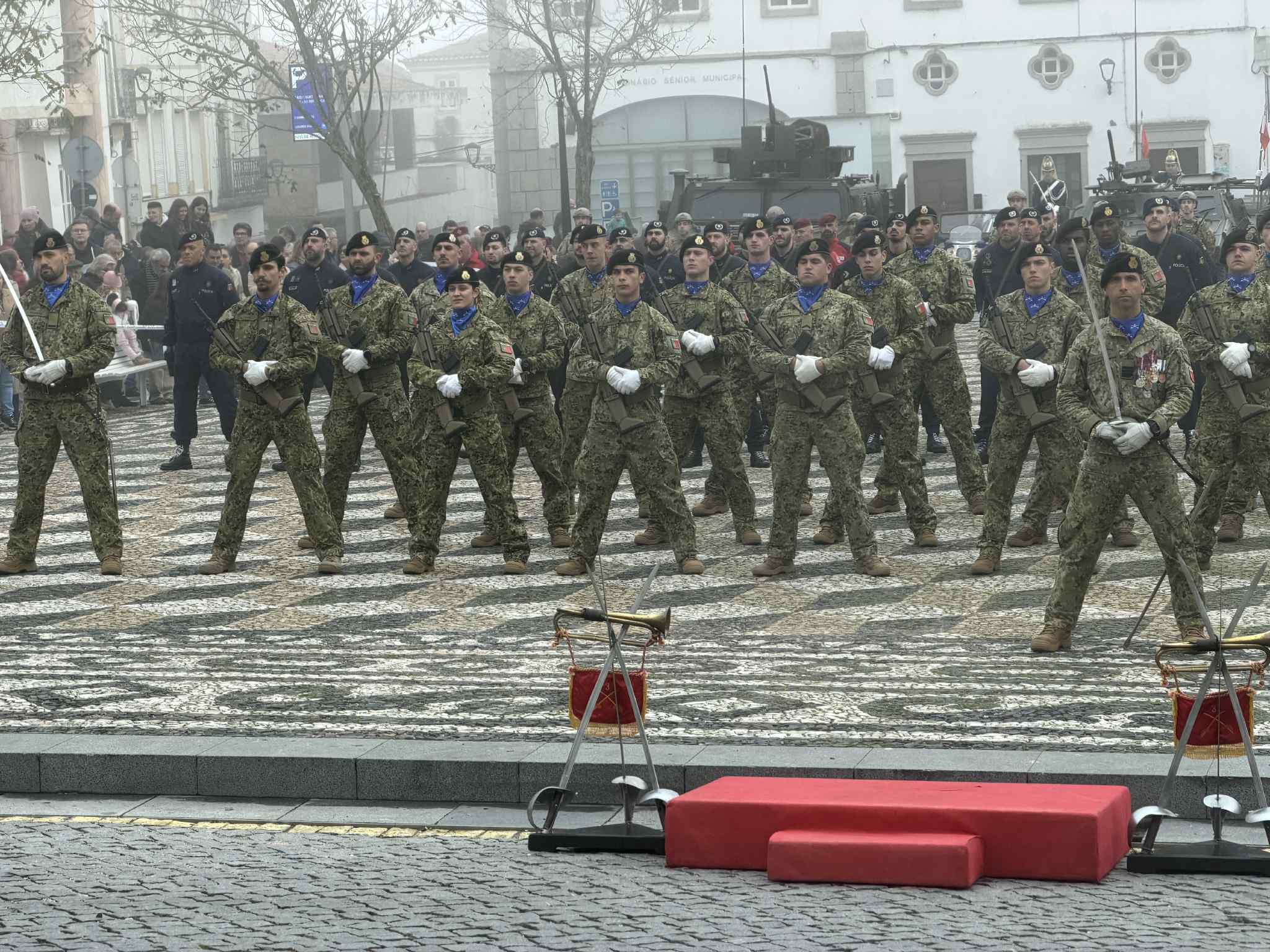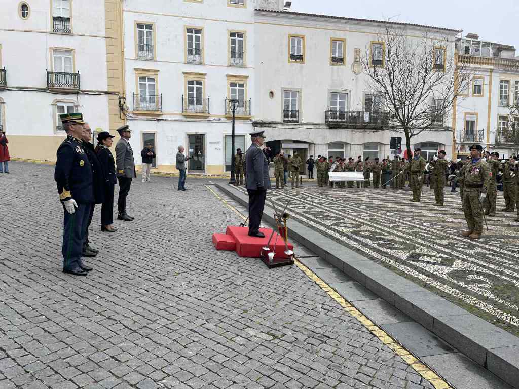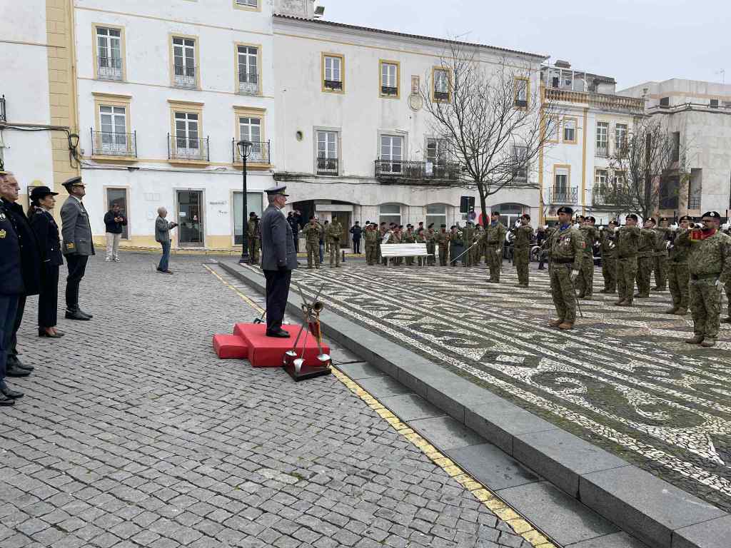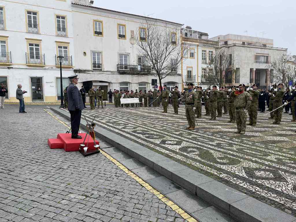 O contingente, que desfilou depois pela Rua da Cadeia, contou ainda com viaturas militares do Regime de Cavalaria de Estremoz e veículos pertencentes ao espólio do Museu Militar de Elvas.