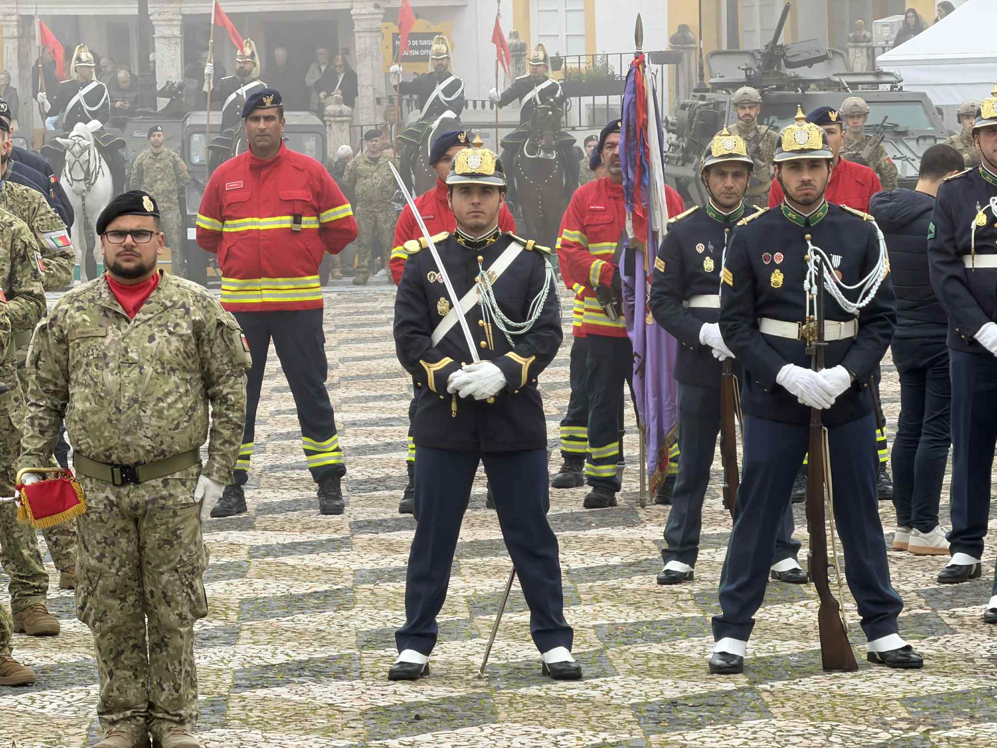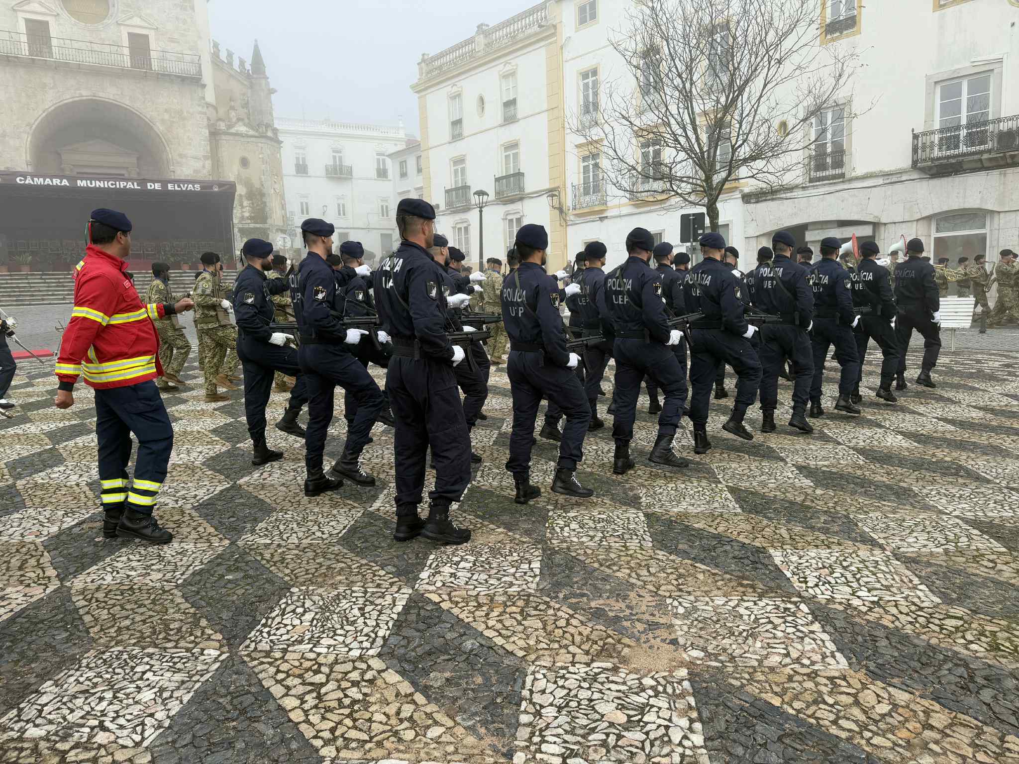 Seguiu-se a incorporação das forças militares e militarizadas na parada da Praça da República. Dela fizeram parte a Banda Sinfónica do Exército, Regimento de Cavalaria nº 3 de Estremoz, Corpo de Intervenção da Polícia de Segurança Pública, Guarda Nacional Republicana a pé e a cavalo, Bombeiros Voluntários de Elvas e a estrutura local da Cruz Vermelha Portuguesa.