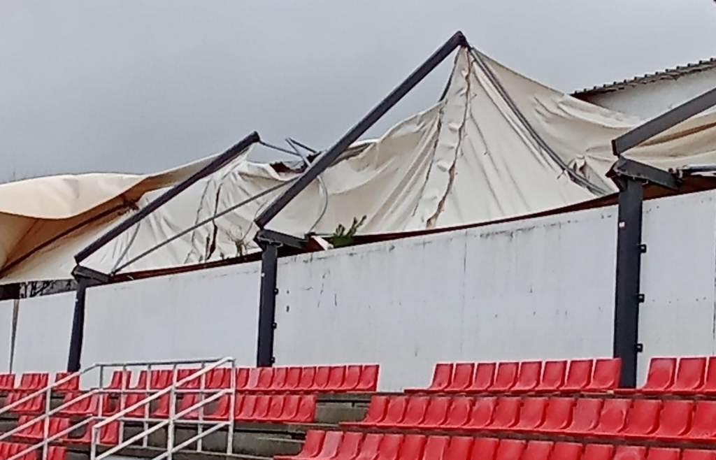Os ventos fortes que se fizeram sentir durante a última noite provocaram alguns estragos na cobertura das bancadas do Campo António Semedo, em Elvas.