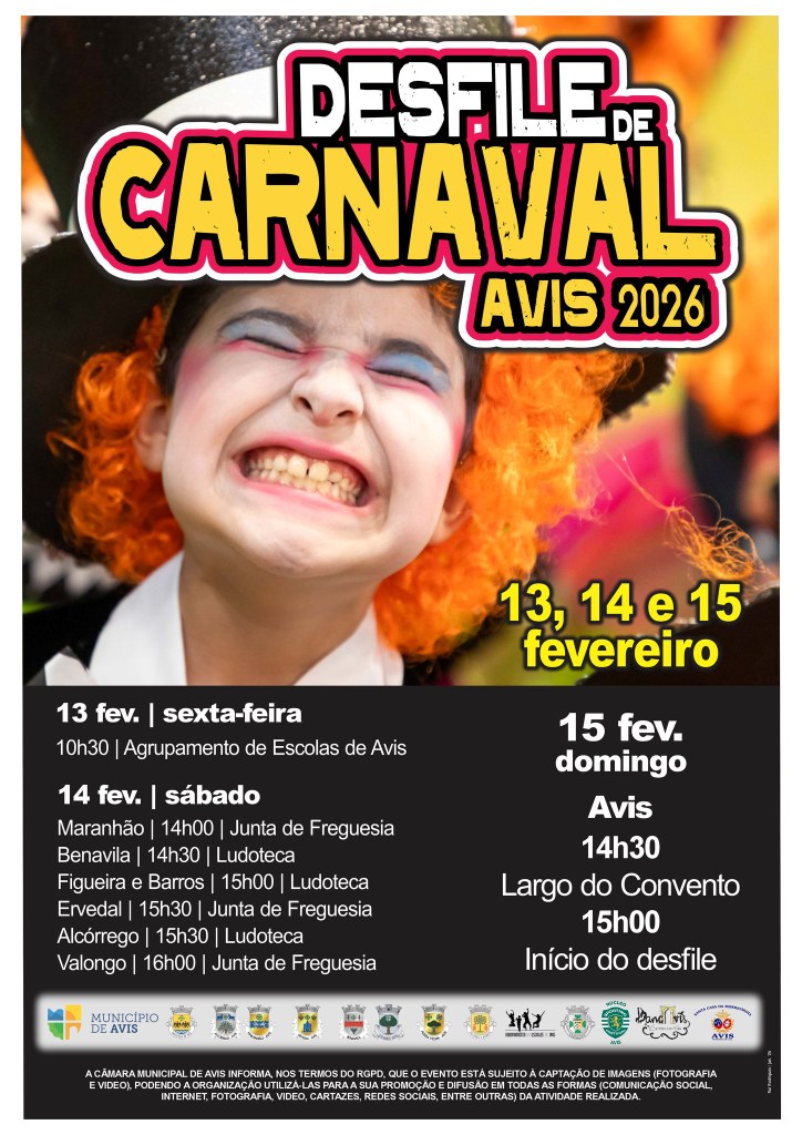 O Município de Avis promove, de 13 a 15 de fevereiro, mais uma edição do Carnaval no concelho, com um programa diversificado de desfiles que irão animar todas as freguesias, celebrando a tradição, a criatividade e o espírito comunitário.