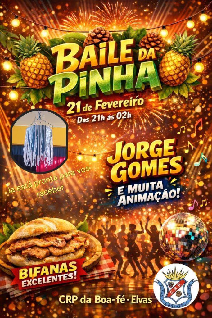 Ainda no âmbito das comemorações de Carnaval, o Centro de Recreio Popular (CRP), da Boa-Fé, em Elvas, promove, na noite deste sábado, 21 de fevereiro, um tradicional Baile da Pinha.