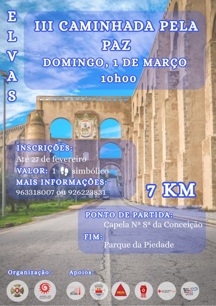 Elvas volta a caminhar pela paz na manhã deste domingo, 1 de março, numa iniciativa organizada, pelo terceiro ano consecutivo, pelo Núcleo da Liga dos Combatentes e a associação juvenil Arkus.