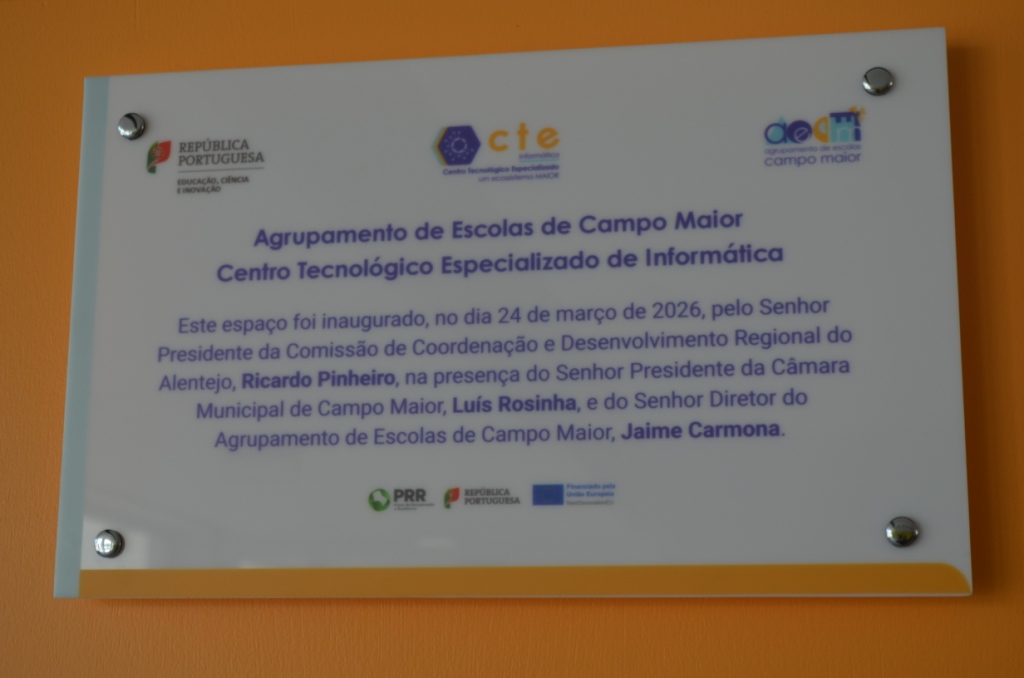 A Escola Secundária de Campo Maior conta agora com um Centro Tecnológico Especializado (CTE) de Informática, resultado de um investimento de mais de 1,2 milhões de euros, com financiamento do Plano de Recuperação e Resiliência (PRR).