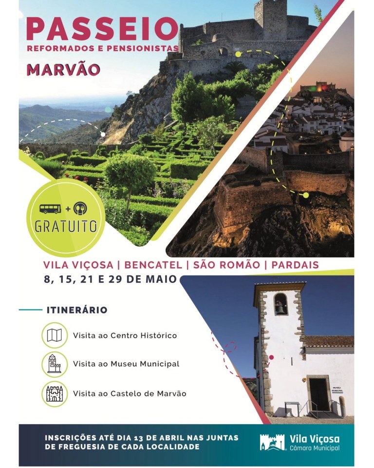 O Município de Vila Viçosa vai promover, em maio, visitas culturais a Marvão, destinadas a reformados e pensionistas.