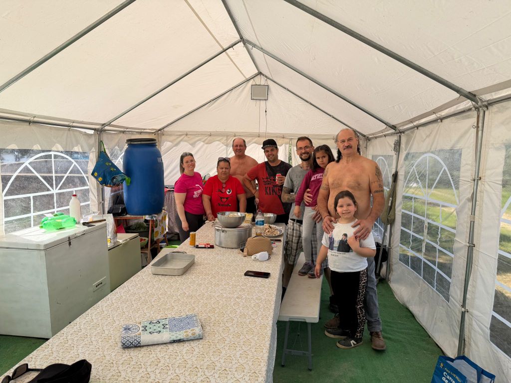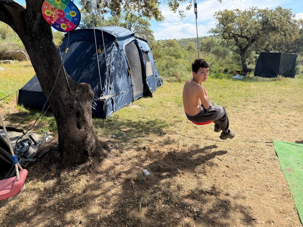 O acampamento, que reúne entre seis a sete famílias, totaliza cerca de 25 pessoas que ali permanecem até à próxima segunda-feira. A estrutura é composta por cinco tendas e duas barracas de grandes dimensões, equipadas com tudo o que é necessário para o conforto do grupo. “Temos geradores por causa da arca e do frigorífico, para ter umas luzes à noite e música com duas colunas de som”, explica Fanan Brás, que faz questão de levar a sua própria lenha, “não corto árvore nenhuma do campo, respeito sempre”, para garantir o aquecimento e as brasas para os cozinhados sem depender de terceiros.