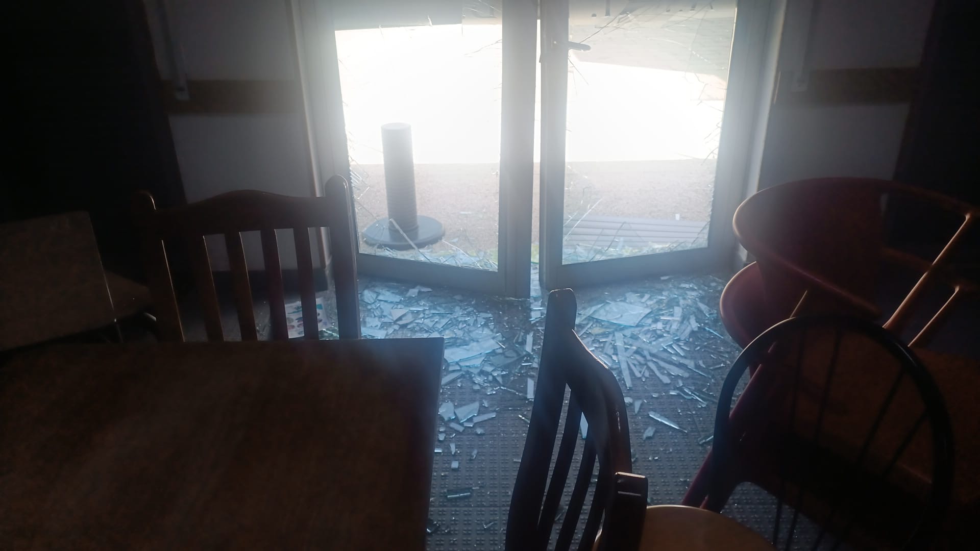 Os assaltantes partiram a porta de entrada para aceder ao interior do estabelecimento, levando uma máquina de vending de snacks, mas com o alarme acionado acabaram por abandonar o local.