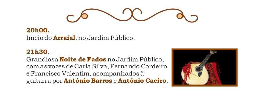 Do programa da festa fazem também parte garraiadas, atuações de DJs, uma noite de fados e arruadas com bandas filarmónicas. “As bandas também têm aqui um papel muito importante, muito associado a esta festividade, e foi uma coisa que recuperámos há dois ou três anos”, adianta Nuno Pereira, que recorda que as arruadas das bandas não aconteciam, por esta ocasião, “desde os anos 60”. Com uma feira montada em torno do santuário, onde reinam sempre os momentos de convívio e lazer, o público poderá ainda desfrutar de diversos divertimentos.