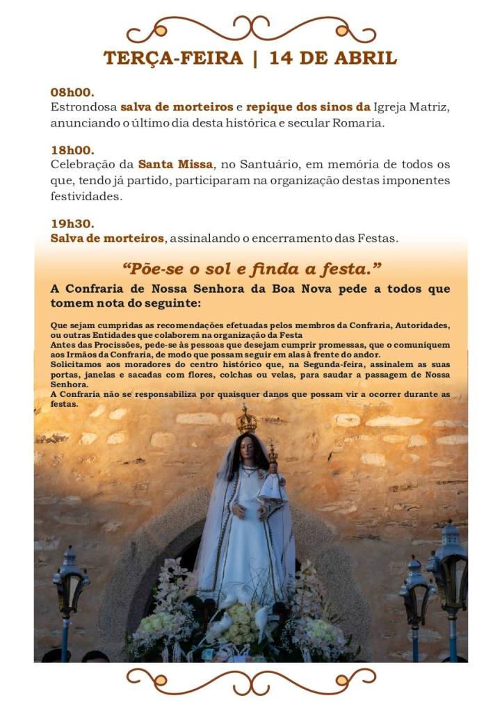 Conheça o programa completo das Festas dos Prazeres em Honra de Nossa Senhora da Boa Nova:
