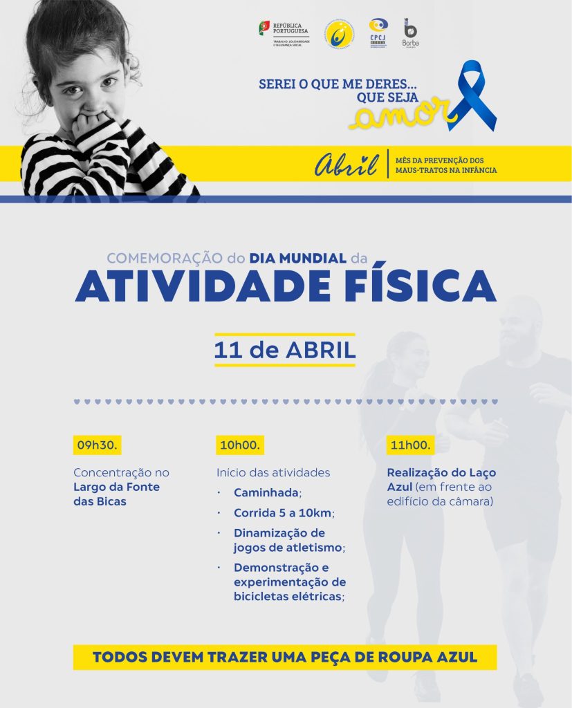 A iniciativa, organizada pelo Município de Borba, combina a promoção do desporto com uma causa social, integrando a campanha do “Laço Azul” para a prevenção dos maus-tratos na infância.