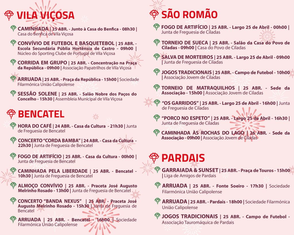 Conheça a programação completa das celebrações do 25 de abril no concelho de Vila Viçosa: