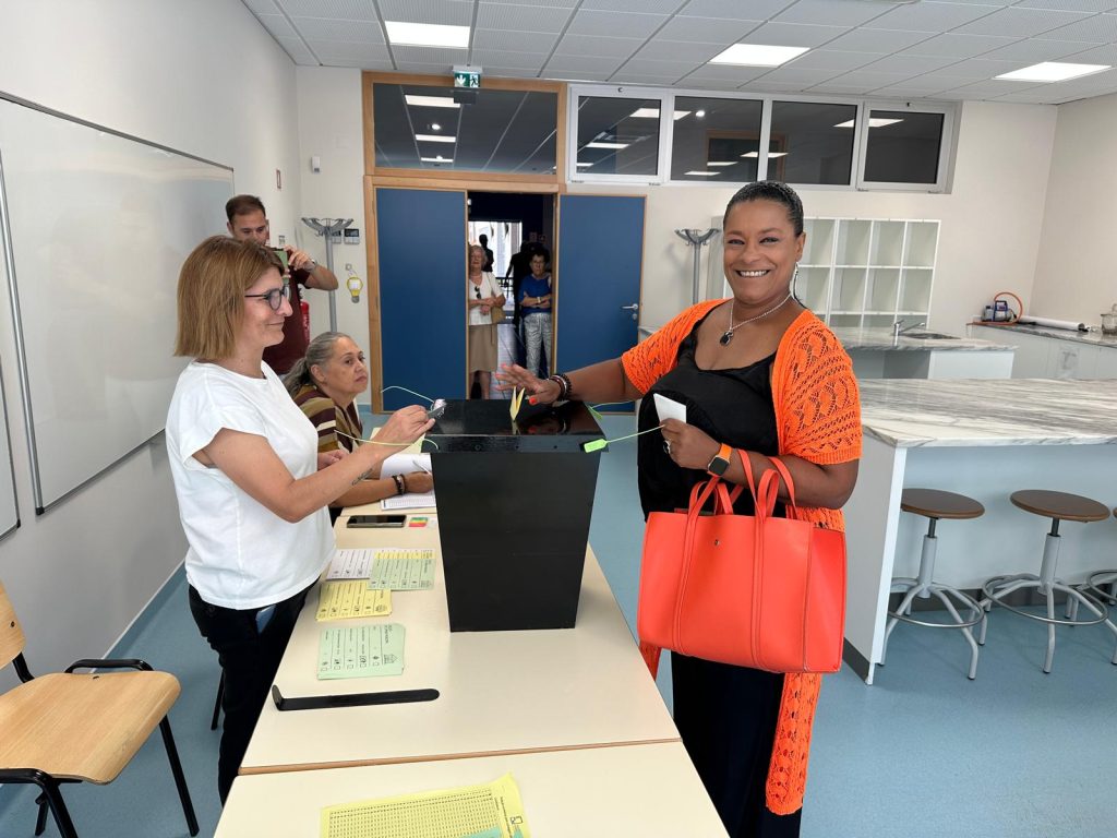 A candidato da da Aliança Democrática (AD) votou na freguesia de Assunção, na Escola EB 2/3 de Santa Luzia, esta manhã cerca das 10.30 horas. Margarida Paiva perante a boa